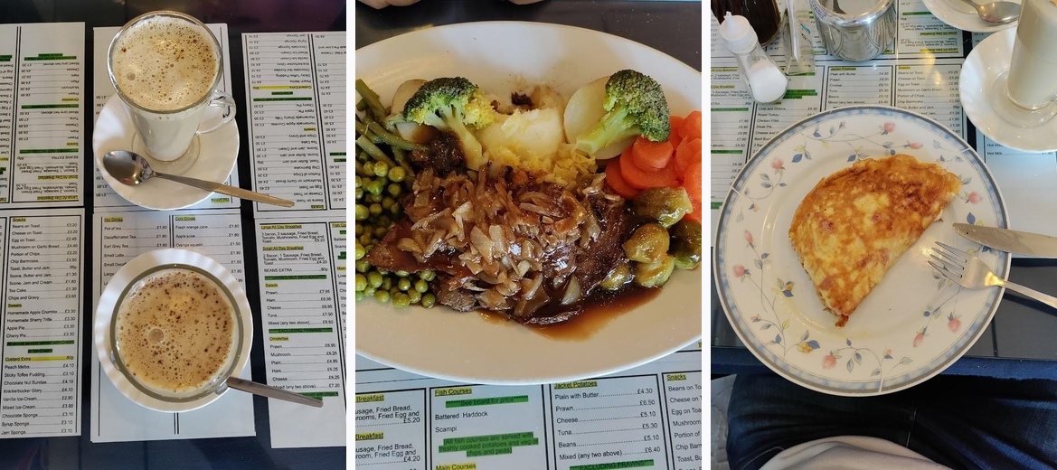 Came across this family-run café on a day out to Fleetwood Market. Just across the road from the market entrance, it looked small and unassuming on the outside, but inside it was homely and inviting, with comfortable chairs and some lovely decorative plaques and pictures of bygone Fleetwood on the walls. It was also very clean. The lady who served me (Carol I believe her name is) was so cheerful, chatty and friendly, and nothing was too much trouble for her. The café is obviously a favourite with locals, who go there regularly for lunch (always a good sign!). The extensive menu (displayed under glass on the tables) includes breakfasts, sandwiches, toasties, jacket potatoes, and good old-fashioned cooked dinners. They also do pensioners' specials. I ordered the liver and onions with potatoes and veg. It was cooked to perfection, with ample portions. Both food and plate were hot. No fewer than six different vegetables on the plate, and lovely rich gravy. The pot of tea was nice and hot. They also do a great selection of traditional puddings and ice-cream. Tried their homemade apple crumble with custard, and it was really good! Delicious strong coffee to finish. Payment was cash only. At £15.10 for the entire meal, including drinks, it was excellent value for money. If you're looking for good traditional homemade food and warm, friendly hospitality, you can't go wrong here. Would definitely come again.
